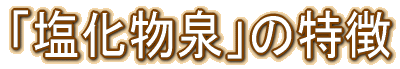 海水の成分に似た食塩を含み、塩辛く無色透明の湯です。 以前は塩化物泉が日本で一番多い泉質だったのですが、掘削技術の進んだ現在は次々と温泉が誕生し、単純温泉が一番多い泉質となってしまいました。 塩化物泉は高齢者向きでよくあたたまります。 入浴することにより、皮膚に塩分が付着し、汗の蒸発を防ぐため、保温効果がよく、湯冷めしにくい事から「熱の湯」といわれるのです。 神経痛、関節性リウマチ、冷え症等の症状に効果があるます。 また、飲用することにより、胃腸の消化液分泌及び運動を促進し、胃腸病や慢性便秘にも効果があります。 ただし、食塩制限のある疾患、高血圧、心臓病、腎臓病、浮腫(ふしゅ)のある時等は控えた方が良いでしょう。