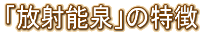 放射能泉は、文字通り放射能を含む温泉です。 放射能というと怖いイメージがありますが、温泉中に含有されるラドンは常温で気体、湧出後は空気中に散飛するため全く心配ありません。 これらは浴用・飲用でも体内に吸収されますが、呼気によってすぐ体外に排泄されます。 ラドンは吸入が一番良く、 浴槽を仕切って、ラドンを吸入しやすくした浴場も見受けられます。 高尿酸血症、痛風、尿路慢性炎症、糖尿病に効果があり、下垂体副腎系、卵巣、睾丸の機能を高める作用もあります。 浴用によって腎機能は改善され、鎮静的に作用するので、神経痛、リューマチ、神経麻痺、自律神経過敏状態等に利用されます。尿酸を尿から出すので「痛風の湯」とも言われます。 ただし、放射能泉は湯あたりを起こしやすいので注意が必要です。 無色透明な湯で、薬効の効率がもっとも高いです。数が少なく貴重な温泉です。 なお、放射能泉は空気に触れたり、時間がたったりすると効能成分が失われやすいので、温泉が浴槽の下から注がれている風呂が理想的です。
