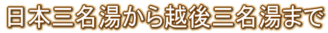 ●草津温泉 ●下呂温泉 ●有馬温泉 江戸時代の儒学者「林羅山」が文書に残したものを元に名づけられたのが越後三名湯。