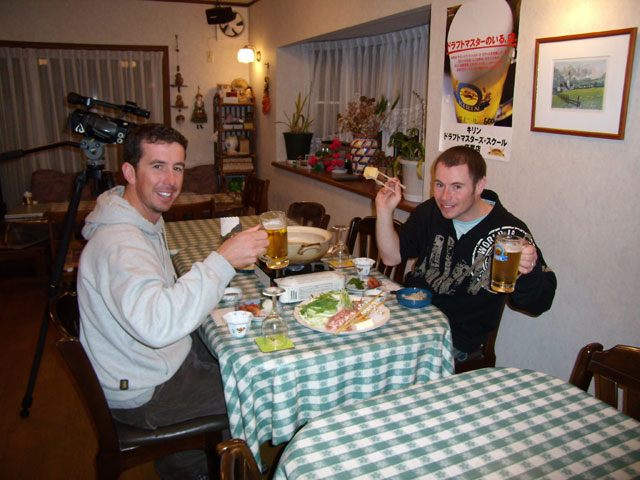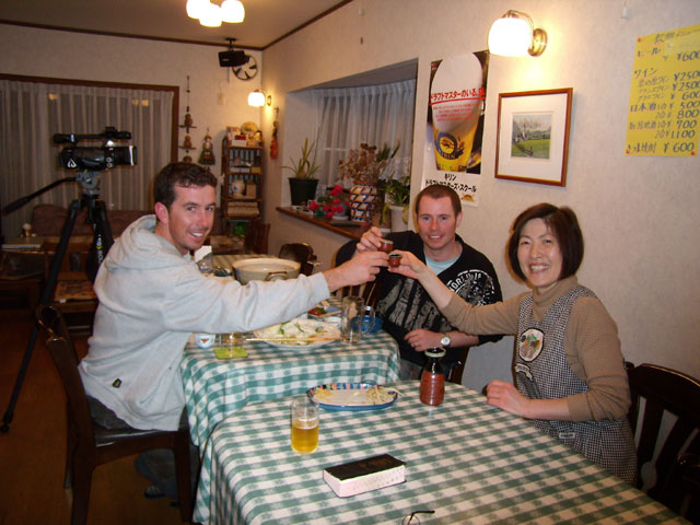 オーストラリアから、妙高高原の取材に来たクリスとキャメロンがモン・セルヴァンに宿泊した。5泊という長期滞在でしたが、明るくて、人のよい方たちで日本食も何でもOK。特にさしみ、鍋、熱燗などは大