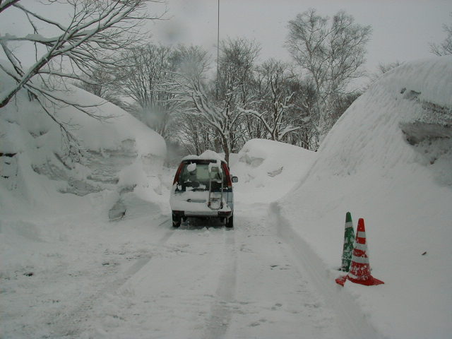 | 3/9(木) | ここのところ、雪がほとんど降っていない。住んでいるものにとっては平穏な日々である。積雪も急激に減ってきて、ピーク時より1mほど減った。それでも家の周りには3m近い雪がある。もう降らなくても5月の連休まで十分に持つだろう。 ところで、オークションで買い入れたデリカが急にエンジンの調子が悪くなり、廃車することになりそう。 安もの買いの銭失いとはこのことだろう。1ヶ月のつきあいだった。オークションで車を買う場合は十分気をつけてください。 |