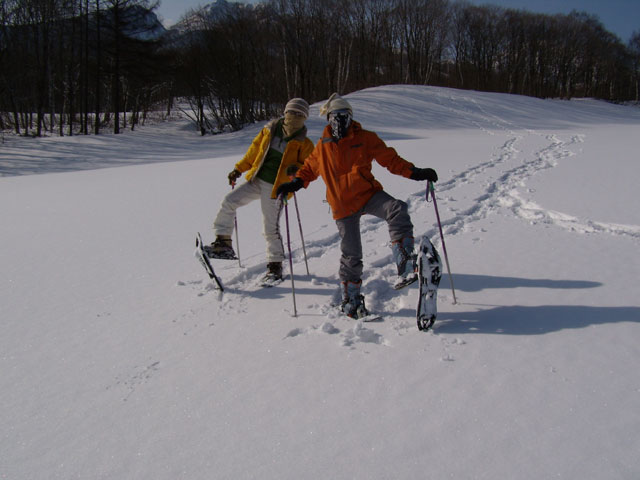 昨夜の大雪とは打って変わって、久しぶりに良く晴れた半日だった。今日は、昨夜から泊まっていただいている石賀さんらが、スノーシューを体験したいということなので、午前中2時間妙高山麓に連れていった。 今年初めてのスノーシューだ。でも今日は晴で抜群の条件。すべてが美しく輝いて見える。 ここのところ、ずっと暗く寒い日々だったのでこの晴の美しい景色はまた格別だ。厳しい自然環境だがそれだけに垣間見せる本物の自然の情景は素晴らしい。 |